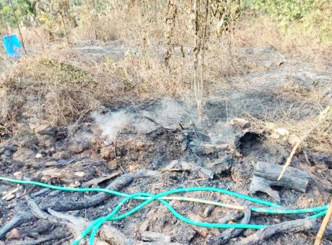 ವಿದ್ಯುತ್ ಶಾರ್ಟ್ ಸಕ್ಯೂಟ್ ಆಗಿ ಬೆಂಕಿ ಹತ್ತಿದ್ದು ಅಡಕೆ ಮತ್ತು ರಬ್ಬರ್ ತೋಟಕ್ಕೆ ವ್ಯಾಪಿಸಿದೆ. ಕೂಡಲೇ ಅಗ್ನಿಶಾಮಕದವರಿಗೆ ಮಾಹಿತಿ ನೀಡಿದ್ದು ಅಗ್ನಿಶಾಮಕದಳದವರು ಆಗಮಿಸಿ ಬೆಂಕಿ ನಂದಿಸಿದರೂ ಮತ್ತೆ ಬೆಂಕಿ ಕಾಣಿಸಿಕೊಂಡಿತು. ಬಳಿಕ ಸ್ಥಳೀಯರ ಸಹಕಾರದಿಂದ ಬಳಿಕ ಬೆಂಕಿ ನಂದಿಸಲಾಯಿತು. ಘಟನೆ ಹಲವು ಗಿಡಗಳು ಬೆಂಕಿಗೆ ಆಹುತಿಯಾಗಿದೆ.