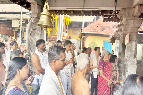 ದೇವಾಲಯಕ್ಕೆ ಆಗಮಿಸಿದ ಸಚಿವರು ಪೂಜೆ ಸಲ್ಲಿಸಿ, ದೇವಸ್ಥಾನದ ಪರಿಸರವನ್ನು ವೀಕ್ಷಿಸಿದರು. ಈ ವೇಳೆ ದೇವಸ್ಥಾನದ ಆಡಳಿತ ಮಂಡಳಿ ವತಿಯಿಂದ ನಿರ್ಮಲಾ ಸೀತಾರಾಮನ್ ಅವರಿಗೆ ಸನ್ಮಾನಿಸಲಾಯಿತು. ಸಚಿವೆ ಭೇಟಿ ವೇಳೆ ನೆರೆದಿದ್ದ ಅರ್ಚಕ ವರ್ಗ ಅವರೊಂದಿಗೆ ಫೋಟೋ ಕ್ಲಿಕ್ಕಿಸಿಕೊಂಡರು.
