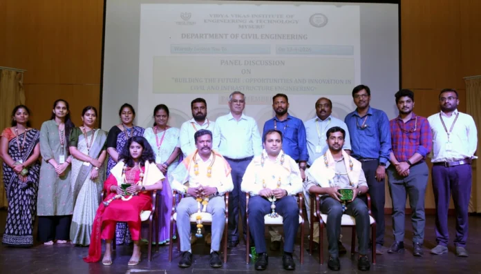 ಮೈಸೂರು: ಏ.14:- ಮೈಸೂರಿನ ವಿದ್ಯಾ ವಿಕಾಸ್ ಇಂಜಿನಿಯರಿಂಗ್ ಮತ್ತು ತಾಂತ್ರಿಕ ಮಹಾವಿದ್ಯಾಲಯ (ಗಿಗಿIಇಖಿ)ದಲ್ಲಿ ಸಾಂಪ್ರದಾಯಿಕ ಸಿವಿಲ್ ಎಂಜಿನಿಯರಿಂಗ್ನಿಂದ ಉದಯೋನ್ಮುಖ ಕ್ಷೇತ್ರವಾದ `ಸಿವಿಲ್ ಮತ್ತು ಇನ್ಫ್ರಾಸ್ಟ್ರಕ್ಚರ್ ಎಂಜಿನಿಯರಿಂಗ್’ಗೆ ಆಗುತ್ತಿರುವ ಪರಿವರ್ತನೆ ಕುರಿತಾಗಿ ಮಹತ್ವದ ತಜ್ಞರ ಸಂವಾದ ಕಾರ್ಯಕ್ರಮವನ್ನು ಆಯೋಜಿಸಲಾಗಿತ್ತು