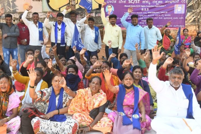 ಸ್ವಂತ ಸೂರು- ನೆಲೆ ಇಲ್ಲದ ನಿವೇಶನ ರಹಿತರಾದ ಮಹಿಳಾ ಫಲಾನುಭವಿಗಳಿಗೆ,ವಿಶೇಷ ವರ್ಗದವರಿಗೆ ನಿವೇಶನ ನೀಡುವಂತೆ ಒತ್ತಾಯಿಸಿ ಭಾರತದೇಶ ಎಸ್.ಸಿ ಎಸ್.ಟಿ.ಹಕ್ಕು ರಕ್ಷಣಾ ಸಂಘಟನೆಯ ರಾಜ್ಯಾಧ್ಯಕ್ಷ ವಿ.ತುಳಸಿಪ್ರಕಾಶ್ ರವರ ನೇತೃತ್ವದಲ್ಲಿ ಮಹಿಳೆಯರು, ಮುಖಂಡರು ಮತ್ತು ಕಾರ್ಯಕರ್ತರು ಇಂದು ನಗರದ ಫ್ರೀಡಂ ಪಾರ್ಕ್ನಲ್ಲಿ ಪ್ರತಿಭಟನೆ ನಡೆಸಿದರು.