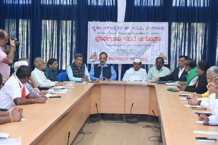 ನಗರದ ಕ್ವೀನ್ಸ್ ರಸ್ತೆಯ ಕೃಷಿ ತಂತ್ರಜ್ಞರ ಸಂಸ್ಥೆ ಆವರಣದಲ್ಲಿ ರೈತರ ಆತ್ಮಹತ್ಯೆಗಳ ತಡೆ ಸಮಿತಿಯ ಪೂರ್ವಭಾವಿ ಸಭೆ ಇಂದು ನಡೆಯಿತು. ಸಭೆಯಲ್ಲಿ ಸರ್ವೋಚ್ಛ ನ್ಯಾಯಾಲಯದ ಕೃಷಿ ಸುಧಾರಣಾ ಸಮಿತಿ ಅಧ್ಯಕ್ಷ ದೇವೇಂದ್ರ ಶರ್ಮಾ, ಶಾಸಕ, ಸರ್ಕಾರದ ಯೋಜನಾ ಆಯೋಗದ ಉಪಾಧ್ಯಕ್ಷ ಬಿ.ಆರ್. ಪಾಟೀಲ್, ಮಾಜಿ ರಾಜ್ಯಸಭಾ ಸದಸ್ಯ ಎಲ್. ಹನುಮಂತಯ್ಯ, ರೈತ ನಾಯಕ ಕೆ.ಟಿ. ಗಂಗಾಧರ್, ಮತ್ತಿತರರು ಉಪಸ್ಥಿತರಿದ್ದರು.