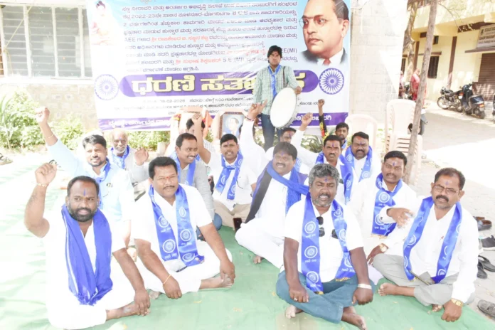 ಕಲಬುರಗಿ: ಕರ್ನಾಟಕ ರಾಜ್ಯ ದಲಿತ ಸಂಘರ್ಷ ಸಮಿತಿ (ಡಾ.ಅಂಬೇಡ್ಕರ ಕ್ರಾಂತಿ) ನೆತೃತ್ವದಲ್ಲಿ ಸಣ್ಣ ನೀರಾವರಿ ಮತ್ತು ಅಂತರ್ಜಲ ಅಭಿವೃದ್ಧಿ ಇಲಾಖೆ ಕಚೇರಿ ಎದುರು ಧರಣಿ ಸತ್ಯಾಗ್ರಹ ಕೈಗೊಂಡು, ಕಳೆದ 2022-23ನೇ ಸಾಲಿನ ಘೂಳನೂರ-ಮೋಗನಿಟಗಾ ಬಾಕಿ 9.72 ಕೋಟಿ ರೂ.ಗಳ ಕಾಮಗಾರಿಯನ್ನು ಕೈಗೊಳ್ಳದೇ 2 ವರ್ಷಗಳ ವಿಳಂಬ ಮಾಡಿ ಸರ್ಕಾರಕ್ಕೆ ತಪ್ಪಾಗಿ ಮಾಹಿತಿ ನೀಡಿ ಅವ್ಯವಹಾರ ಮಾಡುವ ಹುನ್ನಾರ ಮಾಡಿರುವ ಇಲಾಖೆಯ ಎಇಇ ಅವರನ್ನು ಸೇವೆಯಿಂದ ಅಮಾನತ್ತು ಗೊಳಿಸುವಂತೆ ಆಗ್ರಹಿಸಿ ಬೇಡಿಕೆಯ ಮನವಿ ಪತ್ರವನ್ನು ಇಲಾಖೆಯ ಮುಖ್ಯಸ್ಥರ ಮುಖಾಂತರ ಸಚಿವರಾದ ಪ್ರೀಯಾಂಕ್ ಖರ್ಗೆ ಅವರಿ ಸಲ್ಲಿಸಲಾಯಿತು. ಸಂಗಮನಾಥ ಬಟಗೇರಿ, ಕುಪೇಂದ್ರ ಬಿಲ್ವಾಡ ಸೇರಿದಂತೆ ಹಲವರಿದ್ದರು
