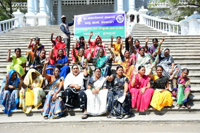 ಕಲಬುರಗಿ: ಸಂವಿಧಾನಬದ್ಧ ಮತದಾನದ ಹಕ್ಕನ್ನು ಕಸಿದುಕೊಳ್ಳುವ ಕೇಂದ್ರ ಸರ್ಕಾರದ ಕರಾಳ ಎಸ್.ಐ.ಆರ್ ಕಾಯ್ದೆಯನ್ನು ವಿರೋಧಿಸಿ ರಾಜ್ಯ ಸರ್ಕಾರ ನಿರ್ಣಯ ಕೈಗೊಳ್ಳಲು ಆಗ್ರಹಿಸಿ ಸ್ಲಂ ಜನಾಂದೋಲನ ಕರ್ನಾಟಕ ಜಿಲ್ಲಾ ಘಟಕದ ನೆತೃತ್ವದಲ್ಲಿಂದು ಜಿಲ್ಲಾಧಿಕಾರಿಗಳ ಕಚೇರಿ ಎದರು ಪ್ರತಿಭಟನೆ ಕೈಗೊಂಡು ಬೇಡಿಕೆಯ ಮನವಿಪತ್ರವನ್ನು ಜಿಲ್ಲಾಡಳಿತದ ಮುಖಾಂತರ ಮುಖ್ಯಮಂತ್ರಿ ಸಿದ್ದರಾಮಯ್ಯ ಅವರಿಗೆ ಸಲ್ಲಿಸಲಾಯಿತು. ಸಂಘಟನೆಯ ಜಿಲ್ಲಾಧ್ಯಕ್ಷೆ ಗೌರಮ್ಮ ಮಾಕಾ, ಸಂಚಾಲಕರಾದ ರೇಣುಕಾ ಸರಡಗಿ, ಶರಣು ಕಣ್ಣಿ, ಸುನಿತಾ ಕೊಳ್ಳೂರ, ಸುಗರಾ ಬೇಗಂ, ಕಲಾವತಿ ಸೇರಿದಂತೆ ಕಾರ್ಯಕರ್ತರು ಭಾಗವಹಿಸಿದ್ದರು.
