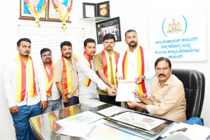 ಕಲಬುರಗಿ: ಕಲ್ಯಾಣ ಕರ್ನಾಟಕ ರಕ್ಷಣಾ ವೇದಿಕೆ ನೆತೃತ್ವದಲ್ಲಿ ಜಿಲ್ಲಾ ಆರೋಗ್ಯ ಮತ್ತು ಕುಟುಂಬ ಕಲ್ಯಾಣ ಅಧಿಕಾರಿಗೆ ಮನವಿ ಸಲ್ಲಿಸಿ ಮಟ್ಕಾ ಸೇರಿದಂತೆ ಅಕ್ರಮ ಚಟುವಟಿಕೆಯಲ್ಲಿ ತೊಡಗಿರುವ 108 ಅಂಬುಲೆನ್ಸ್ ವಾಹನ ಚಾಲಕರಿಬ್ಬರನ್ನು ಸೇವೆಯಿಂದ ವಜಾ ಗೊಳಿಸುವಂತೆ ಆಗ್ರಹಿಸಲಾಯಿತು. ವೇದಿಕೆಯ ಜಿಲ್ಲಾಧ್ಯಕ್ಷ ಸಂದೀಪ ಭರಣಿ ಸೇರಿದಂತೆ ಹಲವರಿದ್ದರು.