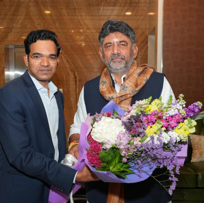 ವಿಶ್ವಮಟ್ಟದ ಸ್ಮಾರ್ಟ್ ವಾಟರ್ ನೆಟ್ವರ್ಕ್ ಫೋರಂನ ೫ನೇ ಹಿರಿಯ ಯುಟಿಲಿಟಿ ಸಲಹಾ ಸಮಿತಿಗೆ ಭಾರತದ ಏಕೈಕ ಪ್ರತಿನಿಧಿಯಾಗಿ ಆಯ್ಕೆಯಾಗಿರುವ ಬೆಂಗಳೂರು ಜಲಮಂಡಳಿ ಅಧ್ಯಕ್ಷ ರಾಮ್ ಪ್ರಸಾತ್ ಮನೋಹರ್ರವರು ಉಪ ಮುಖ್ಯಮಂತ್ರಿ ಡಿ.ಕೆ. ಶಿವಕುಮಾರ್ರವರನ್ನು ಸದಾಶಿವನಗರದಲ್ಲಿಂದು ಭೇಟಿ ಮಾಡಿ ಪುಷ್ಪಗುಚ್ಛ ನೀಡಿ ಧನ್ಯವಾದ ಅರ್ಪಿಸಿದರು.