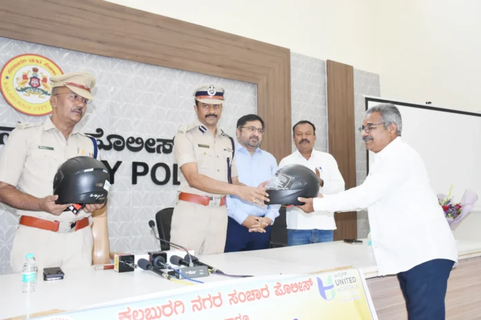 ಕಲಬುರಗಿ: ನಗರದ ಪೊಲೀಸ್ ಆಯುಕ್ತರ ಕಚೇರಿಯಲ್ಲಿಂದು ಪೊಲೀಸ್ ಇಲಾಖೆ ಮತ್ತು ಯುನೈಟೆಡ್ ಆಸ್ಪತ್ರೆ ವತಿಯಿಂದ ಪತ್ರಕರ್ತರಿಗೆ ಹೆಲ್ಮೆಟ್ ವಿತರಿಸಲಾಯಿತು. ನಗರ ಪೊಲೀಸ್ ಆಯುಕ್ತ ಡಾ.ಶರಣಪ್ಪ ಎಸ್.ಡಿ,ಸಂಚಾರಿ ಎಸಿಪಿ, ಸಂಚಾರಿ ಪೊಲೀಸ್ ಠಾಣೆ ಪಿಐ ಶಕೀಲ್ ಅಂಗಡಿ, ಯುನೈಟೆಡ್ ಆಸ್ಪತ್ರೆಯ ವ್ಯವಸ್ಥಾಪಕ ನಿರ್ದೇಶಕ ಡಾ.ವಿಕ್ರಮ್ ಸಿದ್ದಾರೆಡ್ಡಿ ಇದ್ದರು.