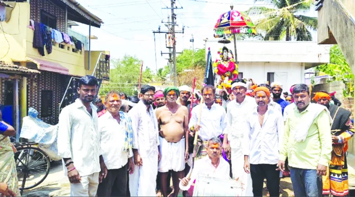 ಹಾವೇರಿ ಜಿಲ್ಲೆ ಶಿಗ್ಗಾವಿ ತಾಲೂಕಿನ ಐತಿಹಾಸಿಕ ತಾಣವಾದ ಬಂಕಾಪುರ ಪಟ್ಟಣದ ಪುರಸಭೆ ವ್ಯಾಪ್ತಿಯಲ್ಲಿ ಬರುವ ಅಂಕದ ಕಣದ ಓಣಿಯಲ್ಲಿರುವ ಶ್ರೀ ಬೀರಲಿಂಗೇಶ್ವರ ದೇವರ ಪಲ್ಲಕ್ಕಿ ಮೆರವಣಿಗೆಗೆ ದಿವ್ಯ ಸಾನಿಧ್ಯ ವಹಿಸಿದ ಶ್ರೀ ಸಿದ್ದಯ್ಯ ಸ್ವಾಮಿಗಳು ಕೆಂಡದ ಮಠ ಚಾಲನೆ ನೀಡಿದರು.