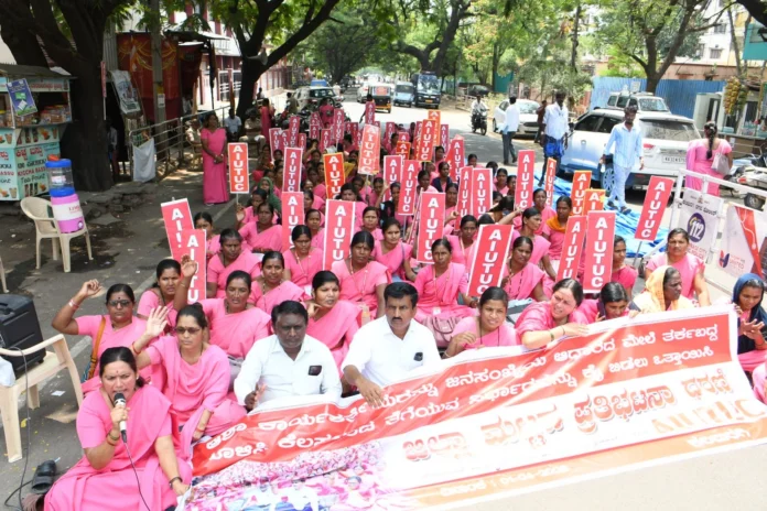 ಕಲಬುರಗಿ: ತರ್ಕಬದ್ಧಗೊಳಿಸುವ ಹೆಸರಿನಲ್ಲಿ ಆಶಾ ಕಾರ್ಯಕರ್ತೆಯರನ್ನು ಕೈಬಿಡುವ ಆದೇಶ ಕೈಬಿಟ್ಟು ಆಶಾಗಳನ್ನು ಮುಂದುವರೆಸಬೇಕು ಎಂದು ಆಗ್ರಹಿಸಿ ಕರ್ನಾಟಕ ರಾಜ್ಯ ಸಂಯುಕ್ತ ಆಶಾ ಕಾರ್ಯಕರ್ತೆಯರ ಸಂಘದ ನೇತೃತ್ವದಲ್ಲಿ ನಗರದಲ್ಲಿ ಇಂದು ಧರಣಿ ಸತ್ಯಾಗ್ರಹ ನಡೆಸಲಾಯಿತು. ಸಂಘದ ಅಧ್ಯಕ್ಷೆ ಶಿವಲಿಂಗಮ್ಮ, ಕಾರ್ಯದರ್ಶಿ ಗೀತಾ ಮಳ್ಳಿ, ಗೌರವಾಧ್ಯಕ್ಷ ವಿ.ಜಿ.ದೇಸಾಯಿ, ಎಸ್.ಎಂ.ಶರ್ಮಾ ಸೇರಿದಂತೆ ಮತ್ತಿತರರು ಧರಣಿ ಸತ್ಯಾಗ್ರಹದಲ್ಲಿ ಭಾಗವಹಿಸಿದ್ದರು.