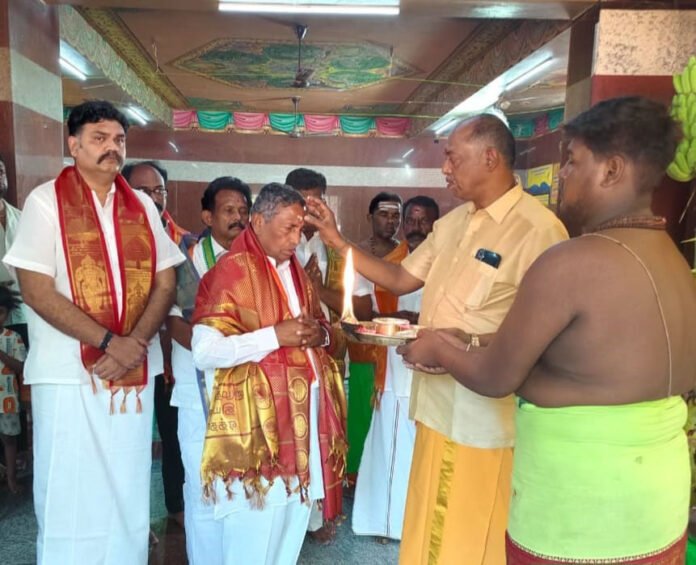 ರಾಜ್ಯ ಆಹಾರ ಮತ್ತು ನಾಗರಿಕ ಪೂರೈಕೆ ಸಚಿವ ಕೆ.ಹೆಚ್. ಮುನಿಯಪ್ಪನವರು ಇಂದು ತಮಿಳುನಾಡಿನ ಅತ್ತೂರ್ನಲ್ಲಿರುವ ಪ್ರಸಿದ್ಧ ಶ್ರೀ ಮುರುಗನ್ ದೇವಾಲಯಕ್ಕೆ ಭೇಟಿ ನೀಡಿ ದೇವರ ಆಶೀರ್ವಾದ ಪಡೆದರು. ಈ ಸಂದರ್ಭದಲ್ಲಿ ತಮಿಳುನಾಡಿನ ಕಾಂಗ್ರೆಸ್ ಮುಖಂಡರು ಉಪಸ್ಥಿತರಿದ್ದರು.
