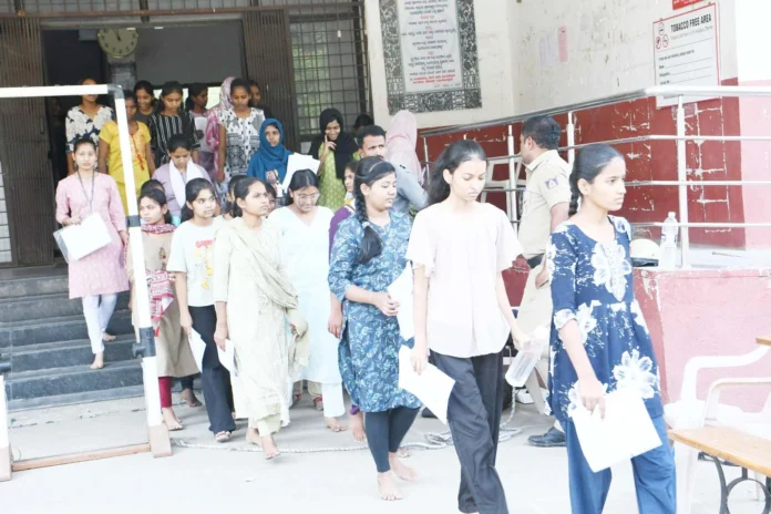 ಕಲಬುರಗಿ: ರಾಜ್ಯಾದ್ಯಂತ ಇಂದಿನಿಂದ ಎರಡು ದಿನಗಳ ಕೆಸಿಇಟಿ ಪರೀಕ್ಷೆಗಳು ಪ್ರಾರಂಭವಾಗಿದ್ದು, ನಗರದ ಸರಕಾರಿ ಪದವಿಪೂರ್ವ ಬಾಲಕಿಯರ ಕಾಲೇಜಿನಲ್ಲಿ ಪರೀಕ್ಷೆಗೆ ಹಾಜರಾದ ವಿದ್ಯಾರ್ಥಿಗಳ ಪರಿಶೀಲನೆ ನಡೆಸಿ ಪರೀಕ್ಷಾಕೇಂದ್ರದೊಳಗೆ ಪ್ರವೇಶ ನೀಡಲಾಯಿತು.