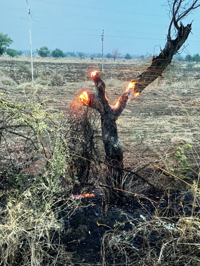 ಕಲಬುರಗಿ ಸೇಡಂ ರಾಜ್ಯ ಹೆದ್ದಾರಿ ಸಮೀಪದ ಟೆಂಗಳಿ ಕ್ರಾಸ್ ಹತ್ತಿರದ ಹೊಲವೊಂದರಲ್ಲಿ ಒಣಗಿದ ಮರವೊಂದಕ್ಕೆ ಸಿಡಿಲು ಬಡಿದು, ಮರಕ್ಕೆ ಸಂಪೂರ್ಣವಾಗಿ ಬೆಂಕಿ ಹೊತ್ತಿಕೊಂಡಿದೆ.