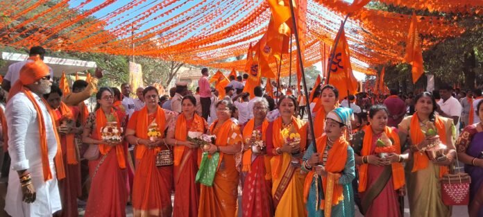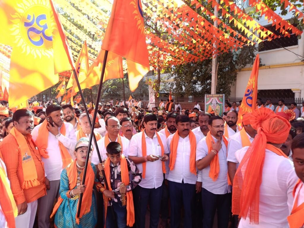 ಕೋಲಾರ,ಫೆ,೧- ನಗರದ ಸರ್ಕಾರಿ ಪದವಿ ಪೂರ್ವ ಕಾಲೇಜಿನ ಸಮೀಪದ ವಾಲ್ಮೀಕಿ ವೃತ್ತದಲ್ಲಿ ಹಿಂದೂ ಸಮಾಜೋತ್ಸವದ ಶೋಭಾ ಯಾತ್ರೆಗೆ ಚಾಲನೆ ನೀಡಲಾಯಿತು. ನಗರದ ವಿವಿಧ ವೃತ್ತಗಳು ಕೇಸರಿಮಯವಾಗಿ ಹಬ್ಬದ ವಾತವರಣ ಕಂಡು ಬಂದಿತು. ಸಾವಿರಾರು ಮಂದಿಯ ಜನಸಾಗರವು ಯಾತ್ರಗೆ ಜಿಲ್ಲೆಯ ವಿವಿಧ ತಾಲ್ಲೂಕುಗಳು, ಗ್ರಾಮದಿಂದ ಹರಿದು ಬಂದಿತು.