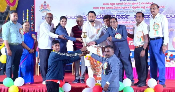 ಅವರು ಪಟ್ಟಣದ ಭೋಜರಾಜ ದೇಸಾಯಿ ಕ್ರೀಡಾಂಗಣದಲ್ಲಿ ಜರುಗಿದ ೨೦೨೫-೨೬ ನೆ ಸಾಲಿನ ರಾಜ್ಯಮಟ್ಟದ ಪದವಿ ಪೂರ್ವ ಕಾಲೇಜುಗಳ ಹ್ಯಾಂಡ್ ಬಾಲ್ ಪಂದ್ಯಾವಳಿ ಕಾರ್ಯಕ್ರಮದ ಉದ್ಘಾಟನಾ ಸಮಾರಂಭದ ಅಧ್ಯಕ್ಷತೆ ವಹಿಸಿಕೊಂಡು ಕಾರ್ಯಕ್ರಮವನ್ನು ಉದ್ಘಾಟಿಸಿ ಮಾತನಾಡುತ್ತಿದ್ದರು.
