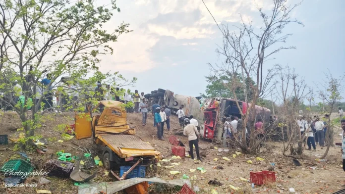 ರಾಷ್ಟ್ರೀಯ ಹೆದ್ದಾರಿಯಲ್ಲಿ ಚಲಿಸುತ್ತಿದ್ದ ಬಲ್ಕರ್ ವಾಹನ, ಸಾರಿಗೆ ಸಂಸ್ಥೆಯ ಬಸ್ ಮತ್ತು ಟಂ ಟಂ (ಆಟೋ ರಿಕ್ಷಾ) ನಡುವೆ ಈ ಅಪಘಾತ ಸಂಭವಿಸಿದೆ. ಮೂರು ವಾಹನಗಳ ನಡುವೆ ನಡೆದ ಈ ಡಿಕ್ಕಿಯ ರಭಸಕ್ಕೆ ಟಂ ಟಂ ಹಾಗೂ ಬಸ್ನಲ್ಲಿದ್ದ ಪ್ರಯಾಣಿಕರು ಗಂಭೀರವಾಗಿ ಗಾಯಗೊಂಡಿದ್ದಾರೆ ಎಂದು ತಿಳಿದುಬಂದಿದೆ.