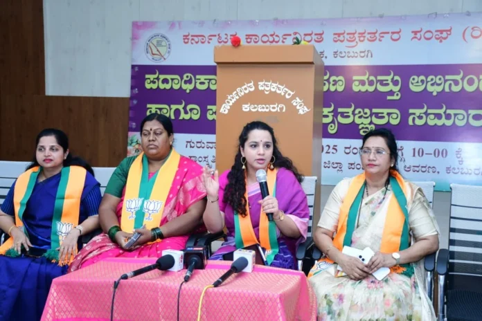 ಕಲಬುರಗಿ ಪತ್ರಿಕಾ ಭವನದಲ್ಲಿ ಇಂದು ಪತ್ರಿಕಾಗೋಷ್ಠಿಯಲ್ಲಿ ಮಾತನಾಡಿದ ಅವರು, ಮಹಿಳಾ ಮೀಸಲಾತಿ ಮಸೂದೆಯನ್ನು ಸ್ವೀಕಾರ ಮಾಡಿ ಎಂದು ರಾಜಕೀಯ ಪಕ್ಷಗಳಿಗೆ ಮನವಿ ಮಾಡಿದರು. ಮುಂದೆ ವಿವಿಧ ಕ್ಷೇತ್ರಗಳ ತಜ್ಞರನ್ನು ಗುರುತಿಸಿ ಅವರಿಗೆ ಟಿಕೆಟ್ ಕೊಡುವಂತಾಗಲಿದೆ ಎಂದು ಆಶಿಸಿದರು. ಮಹಿಳಾ ಮೀಸಲಾತಿ ಜಾರಿಗಾಗಿ ಶ್ರಮಿಸಿದ ಪ್ರಧಾನಿ ನರೇಂದ್ರ ಮೋದಿಯವರಿಗೆ ಧನ್ಯವಾದ ಸಮರ್ಪಿಸಿದರು.