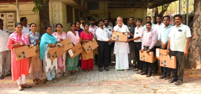 ನಗರದ ಜನಸಂಪರ್ಕ ಕಚೇರಿಯಲ್ಲಿ ಮಂಗಳವಾರ ಆಯೋಜಿಸಿದ್ದ ಕಾರ್ಯಕ್ರಮದಲ್ಲಿ ಗ್ರಾಮ ಆಡಳಿತ ಅಧಿಕಾರಿಗಳು (ವಿಎ) ಮತ್ತು ಆದಾಯ ನಿರೀಕ್ಷಕರು (ಆರ್ಐ)ಗಳಿಗೆ ಸರ್ಕಾರದಿಂದ ಮಂಜೂರಾದ ೧೭ ಲ್ಯಾಪ್ಟಾಪ್ಗಳನ್ನು ವಿತರಿಸಿ ಅವರು ಮಾತನಾಡಿದರು.