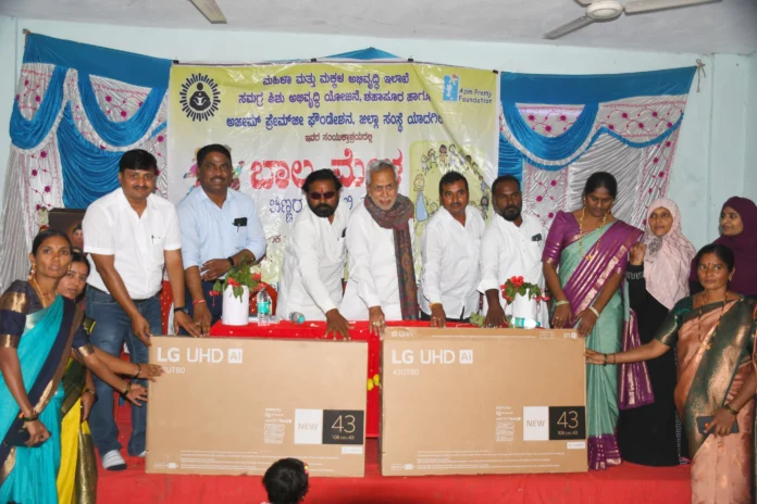 ಇದೇ ಸಂದರ್ಭದಲ್ಲಿ ಕರ್ನಾಟಕ ಸರ್ಕಾರದ ಮಹಿಳಾ ಮತ್ತು ಮಕ್ಕಳ ಕಲ್ಯಾಣ ಇಲಾಖೆಯ ವತಿಯಿಂದ ಅಂಗನವಾಡಿ ಕೇಂದ್ರಗಳಿಗೆ ಟಿವಿ ಸಾಧನಗಳನ್ನು ವಿತರಣೆ ಮಾಡಲಾಗಿದ್ದು, ಮಕ್ಕಳ ಶಿಕ್ಷಣ ಹಾಗೂ ಮನರಂಜನಾ ಚಟುವಟಿಕೆಗಳಿಗೆ ಇದರಿಂದ ಹೆಚ್ಚಿನ ನೆರವು ದೊರೆಯಲಿದೆ ಎಂದು ಅವರು ತಿಳಿಸಿದರು.