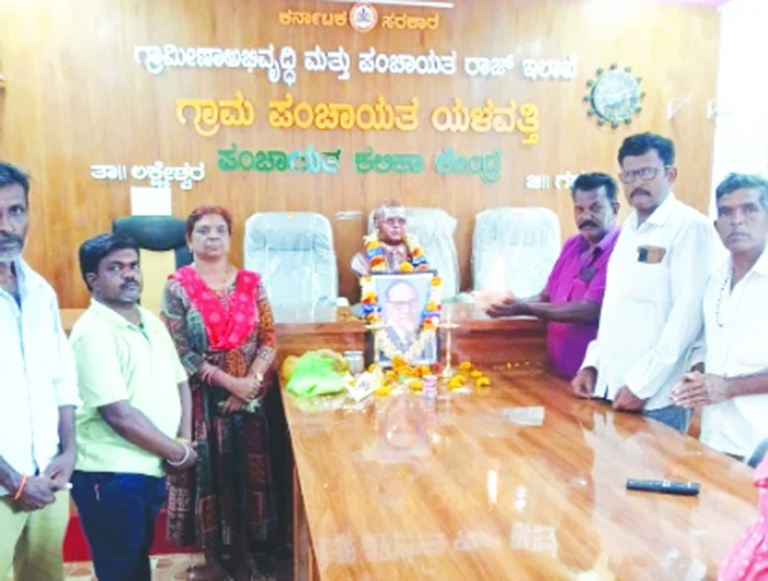 ಲಕ್ಷ್ಮೇಶ್ವರ,ಏ14: ತಾಲೂಕಿನ ಯಳವತ್ತಿ ಗ್ರಾಮ ಪಂಚಾಯಿತಿಯಲ್ಲಿ ಸಂವಿಧಾನ ಶಿಲ್ಪಿ ಭಾರತರತ್ನ ಡಾ. ಬಾಬಾ ಸಾಹೇಬ್ ಅಂಬೇಡ್ಕರ್ ಅವರ 135 ನೇ ಜಯಂತೋತ್ಸವವನ್ನು ಆಚರಿಸಲಾಯಿತು.