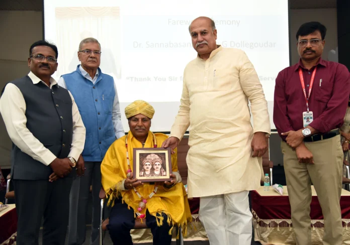 ಕಲಬುರಗಿ; ಫೆ.2:ಶರಣಬಸವೇಶ್ವರ ವಿದ್ಯಾವರ್ಧಕ ಸಂಘ ಮತ್ತು ಶರಣಬಸವ ವಿಶ್ವವಿದ್ಯಾಲಯ ನಡೆಸುತ್ತಿದ್ದ ವಿವಿಧ ಪದವಿ ಕಾಲೇಜುಗಳಲ್ಲಿ ತಮ್ಮ 40 ವರ್ಷಗಳಿಗೂ ಹೆಚ್ಚು ವರ್ಷಗಳ ಸೇವೆಯನ್ನು ಪೂರೈಸಿ, ವೈಯಕ್ತಿಕ ಕಾರಣಗಳಿಂದ, ಶರಣಬಸವ ವಿಶ್ವವಿದ್ಯಾಲಯದ ಕುಲಸಚಿವ ಹುದ್ದೆಗೆ ರಾಜೀನಾಮೆ ನೀಡಿದ ಡಾ. ಎಸ್. ಜಿ. ಡೊಳ್ಳೇಗೌಡರಿಗೆ ಭಾವಪೂರ್ಣವಾಗಿ ಬೀಳ್ಕೊಡಲಾಯಿತು.