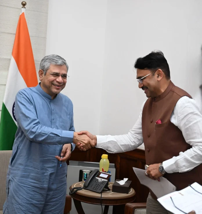 ಯಾದಗಿರಿ:ಏ.೨:ರಾಯಚೂರು-ಯಾದಗಿರಿ ಲೋಕಸಭಾ ಕ್ಷೇತ್ರದ ಸಂಸದರಾದ ಜಿ. ಕುಮಾರ ನಾಯಕ ಅವರು ಕೇಂದ್ರ ರೈಲ್ವೆ ಸಚಿವರಾದ ಅಶ್ವಿನ್ ವೈಷ್ಣವ್ ಅವರನ್ನು ನವದೆಹಲಿಯಲ್ಲಿ ಭೇಟಿ ಮಾಡಿ, ತಮ್ಮ ಕ್ಷೇತ್ರದ ಅಭಿವೃದ್ಧಿ ಹಾಗೂ ಯುವಜನರಿಗೆ ಉದ್ಯೋಗಾವಕಾಶ ಹೆಚ್ಚಿಸುವ ಉದ್ದೇಶದಿಂದ ಹಲವು ಪ್ರಮುಖ ವಿಷಯಗಳನ್ನು ಪ್ರಸ್ತಾಪಿಸಿದರು.