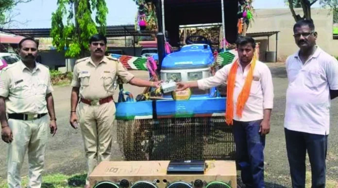 ಚನ್ನಮ್ಮನ ಕಿತ್ತೂರು,ಏ.೨: ಪೋಲಿಸ್ ಠಾಣೆ ವ್ಯಾಪ್ತಿಯ ವಿವಿಧ ಹಳ್ಳಿಗಳಿಂದ ಟ್ರ್ಯಾಕ್ಟರ್ಗಳು ಪಟ್ಟಣಕ್ಕೆ ಆಗಮಿಸುತ್ತಿದ್ದು, ಚಾಲಕರು ವಾಹನಕ್ಕೆ ಸೌಂಡ್ಬಾಕ್ಸ್ ಹಚ್ಚಿಕೊಂಡು ಪೇಟೆ ಓಣಿಗಳ ಮಾರ್ಗದಲ್ಲಿ ಸಾರ್ವಜನಿಕರಿಗೆ ತೊಂದರೆಯಾಗುವAತೆ ಶಬ್ದ ಮಾಡಿಕೊಂಡು ಹೋಗುವಾಗ ಅಪರಾಧ ವಿಭಾಗ ಪಿಎಸ್ಐ ಗಂಗಾಧರ ಹಂಪನ್ನವರ ಪ್ರಕರಣ ದಾಖಲಿಸಿ ಸೌಂಡ್ ಸಿಸ್ಟಮ್ ವಶಪಡಿಸಿಕೊಂಡು ಶಬ್ದ ಮಾಲಿನ್ಯದ ಕುರಿತು ತಿಳುವಳಿಕೆ ನೀಡಿದರು.