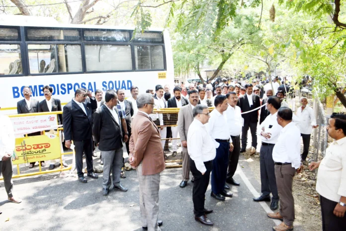 ಜಿಲ್ಲಾ ನ್ಯಾಯಾಲಯದಲ್ಲಿ ಬಾಂಬ್ ಇಡಲಾಗಿದೆ ಎಂದು ಇ-ಮೇಲ್ ಬಂದಿದೆ ಎನ್ನಲಾಗಿದ್ದು, ಈ ಹಿನ್ನೆಲೆಯಲ್ಲಿ ಬಾಂಬ್ ನಿಷ್ಕ್ರಿಯ ದಳ, ಶ್ವಾನದಳ ಮತ್ತು ಬೆರಳಚ್ಚು ತಜ್ಞರು ಸ್ಥಳಕ್ಕೆ ಭೇಟಿ ನೀಡಿ ಪರಿಶೀಲನೆ ನಡೆಸಿದರು.