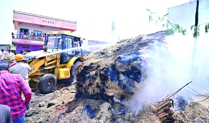 ಬಣವಿಯಲ್ಲಿ ಹೊಗೆಯಾಡುತ್ತಿದ್ದುದನ್ನು ಗಮನಿಸಿದ ಸ್ಥಳೀಯರು ಬೆಂಕಿ ನಂದಿಸಲು ಪ್ರಯತ್ನ ಪಟ್ಟರೂ ಸಾದ್ಯವಾಗದಿದ್ದುದರಿಂದ. ಪುರಸಭೆ ಸಿಬ್ಬಂದಿ ಹಾಗೂ ಅಗ್ನಿಶಾಮಕ ಸಿಬ್ಬಂದಿ ಬೆಂಕಿ ನಂದಿಸಲು ಸಹಕರಿಸಿದರು.