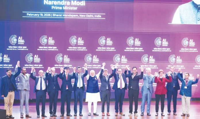 ನವದೆಹಲಿ,ಫೆ.೧೯-ಕೃತಕ ಬುದ್ಧಿಮತ್ತೆಯಲ್ಲಿ ಕ್ರಾಂತಿ ರೂಪಿಸುವಲ್ಲಿ ಭಾರತದ ಪಾತ್ರ ಹಿರಿದು ಎಂದಿರುವ ಪ್ರಧಾನಿ ನರೇಂದ್ರ ಮೋದಿ ಅವರು”ಎಲ್ಲರಿಗೂ ಸಂತೋಷ, ಎಲ್ಲರಿಗೂ ಕಲ್ಯಾಣ” ಎಂಬ ತತ್ವದ ಮೇಲೆ ದೇಶ ಮಾನದಂಡ ರೂಪಿಸಲಾಗುತ್ತಿದೆ, ಜೊತೆಗೆ ಮಾನವ ಎಐ ದೃಷ್ಟಿಕೋನಕ್ಕೆ ಹೆಚ್ಚು ಒತ್ತು ನೀಡಿದೆ ಎಂದು ತಿಳಿಸಿದ್ದಾರೆ.
