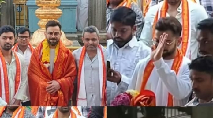 ದೇವಸ್ಥಾನಕ್ಕೆ ಭೇಟಿ ನೀಡಿದಾಗ ಕೊಹ್ಲಿ ಸರಳ ಲುಕ್ನಲ್ಲಿ ಕಾಣಿಸಿಕೊಂಡರು. ಅವರು ಬಿಳಿ ಟಿ-ಶರ್ಟ್, ಭುಜದ ಮೇಲೆ ಟವಲ್ ಮತ್ತು ಕೈಯಲ್ಲಿ ಹಾರವನ್ನು ಹಿಡಿದಿರುವುದು ಕಂಡುಬರುತ್ತದೆ. ಅವರು ಶಾಂತ ಮನಸ್ಸಿನಿಂದ ಪ್ರಾರ್ಥಿಸಿದ್ದಾರೆ.
