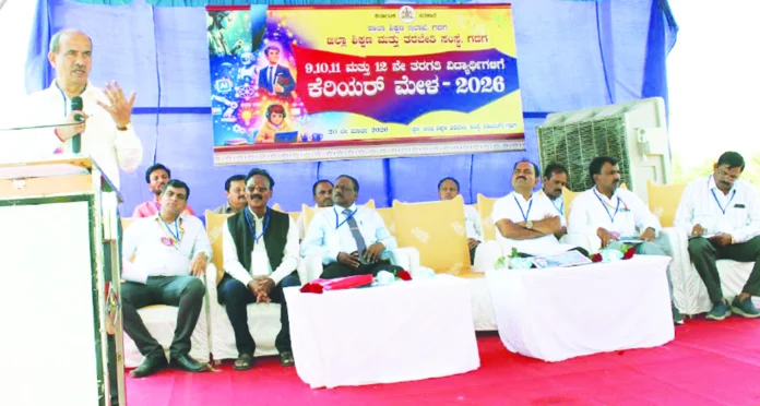 ಡಯಟ್ ಆವರಣದಲ್ಲಿ ಜಿಲ್ಲಾಡಳಿತ, ಜಿ.ಪಂ, ಸಮಗ್ರ ಶಿಕ್ಷಣ ಕರ್ನಾಟಕ ಬೆಂಗಳೂರು, ಶಾಲಾ ಶಿಕ್ಷಣ ಇಲಾಖೆ, ಗದಗ ಜಿಲ್ಲಾ ಶಿಕ್ಷಣ ಮತ್ತು ತರಬೇತಿ ಸಂಸ್ಥೆಯ ಸಂಯುಕ್ತ ಆಶ್ರಯದಲ್ಲಿ ಜರುಗಿದ 9 ರಿಂದ 12ನೇ ತರಗತಿಯ ವಿದ್ಯಾರ್ಥಿಗಳಿಗೆ ಎರ್ಪಡಿಸಲಾಗಿದ್ದ ಕೆರಿಯರ್ ಮೇಳ-2026 ಉದ್ಘಾಟಿಸಿ ಅವರು ಮಾತನಾಡಿದರು.