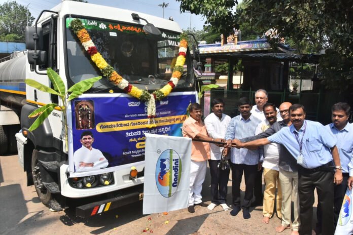 ಬೆಂಗಳೂರು ಹಾಲು ಉತ್ಪಾದಕರ ಒಕ್ಕೂಟ (ಃಂಒUಐ) ವತಿಯಿಂದ ತಿರುಪತಿ ದೇವಸ್ಥಾನದ ಜೊತೆಗಿನ ಒಪ್ಪಂದಕ್ಕೆ ಮರುಜೀವ ಸಿಕ್ಕಿದ್ದು, ಒಟ್ಟು ಸುಮಾರು ೨೦ ಲಕ್ಷ ಕೆಜಿ ನಂದಿನಿ ತುಪ್ಪವನ್ನು ತಿರುಪತಿಗೆ ರವಾನಿಸಲಾಗುತ್ತಿದೆ. ಈ ಹಿನ್ನೆಲೆಯಲ್ಲಿ ಬೆಂಗಳೂರು ಡೇರಿ ಆವರಣದಲ್ಲಿ ಲಾರಿಗಳಿಗೆ ಹಸಿರು ನಿಶಾನೆ ತೋರಿಸಿ ಚಾಲನೆ ನೀಡಲಾಯಿತು.