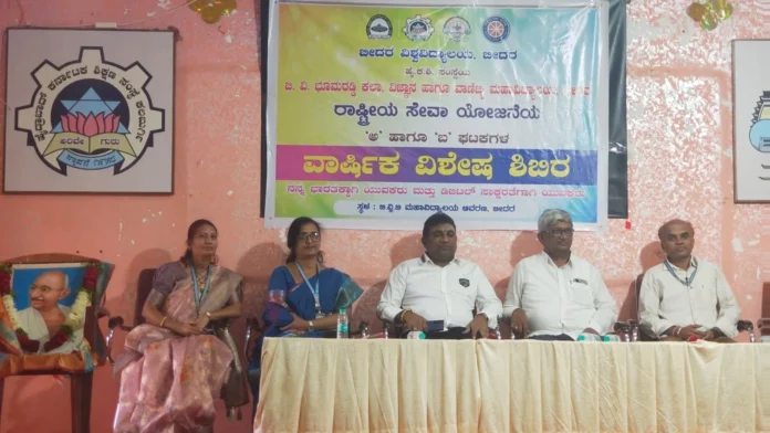 ಕಾರ್ಯಕ್ರಮದ ಮುಖ್ಯ ಅತಿಥಿಯಾಗಿ ಆಗಮಿಸಿ ಬೀದರ ವಿಶ್ವವಿದ್ಯಾಲಯ ಬೀದರನ ಎನ್.ಎಸ್.ಎಸ್. ಯೋಜನಾಧಿಕಾರಿ ಹಾಗೂ ವಿಜ್ಞಾನ ವಿಭಾಗದ ಡೀನರಾದ ಡಾ. ರವೀಂದ್ರ ಗಬಾಡೆಯವರು ಅವರು ಮಾತನಾಡುತ್ತಾ ಈ ಮಹಾವಿದ್ಯಾಲಯದಲ್ಲಿ ಓದಿದ ವಿದ್ಯಾರ್ಥಿಗಳು ಅತ್ಯಂತ ಪುಣ್ಯವಂತರು ಹಾಗೂ ಇಲ್ಲಿ ಅಭ್ಯಾಸಿಸಿದ ವಿದ್ಯಾರ್ಥಿಗಳು ಉನ್ನತ ಹುದ್ದೆ ಪಡೆದು ಸಮಾಜದಲ್ಲಿ ಗೌರವದ ಸ್ಥಾನ ಪಡೆದಿರುತ್ತಾರೆ. ಶಿಬಿರಾರ್ಥಿಗಳಾದ ತಾವು ಇಲ್ಲಿ ಕಲಿತ ಸ್ವಚ್ಛತೆ ಕಾರ್ಯ ತಮ್ಮ ತಮ್ಮ ಗ್ರಾಮಗಳಲ್ಲಿ ಸಂಘ ಕಟ್ಟಿಕೊಂಡು ಗ್ರಾಮದ ನೈರ್ಮಲ್ಯ ಕಾಪಾಡಲು ಮುಂದಾಗಬೇಕೆAದು ನುಡಿದರು.