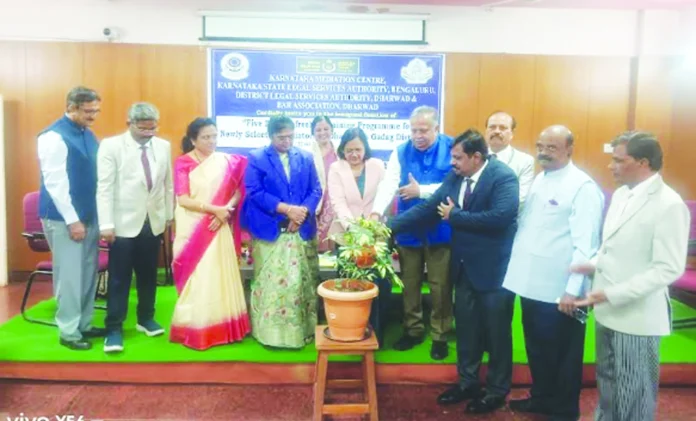 ಧಾರವಾಡ, ಏ.23: ಧಾರವಾಡ ಹಾಗೂ ಗದಗ ಜಿಲ್ಲೆಗಳಲ್ಲಿ ಹೆÇಸದಾಗಿ ಮಧ್ಯಸ್ಥಿಕೆಗಾರರಾಗಿ ಕಾರ್ಯನಿರ್ವಹಿಸಲು ಹೆÇಸದಾಗಿ ನಿಯೋಜನೆ ಮಾಡಿಕೊಂಡ 50 ಜನ ಮಧ್ಯಸ್ಥಿಕೆಗಾರರಿಗೆ ಕರ್ನಾಟಕ ಮಧ್ಯಸ್ಥಿಕೆ ಕೇಂದ್ರ, ಕರ್ನಾಟಕ ರಾಜ್ಯ ಕಾನೂನು ಸೇವೆಗಳ ಪ್ರಾಧಿಕಾರ, ಜಿಲ್ಲಾ ಕಾನೂನು ಸೇವೆಗಳ ಪ್ರಾಧಿಕಾರ, ಧಾರವಾಡ ಹಾಗೂ ಧಾರವಾಡ ವಕೀಲರ ಸಂಘ ಇವರ ಸಂಯುಕ್ತಾಶ್ರಯದಲ್ಲಿ 05 ದಿನಗಳ ತರಬೇತಿ ಕಾಂiರ್Àೂಗಾರದ ಉದ್ಘಾಟನಾ ಕಾರ್ಯಕ್ರಮವನ್ನು ಜಿಲ್ಲಾ ನ್ಯಾಂiÀೂಲಯದ ಸಂಕೀರ್ಣದಲ್ಲಿ ಆಯೋಜಿಸಲಾಗಿತ್ತು.