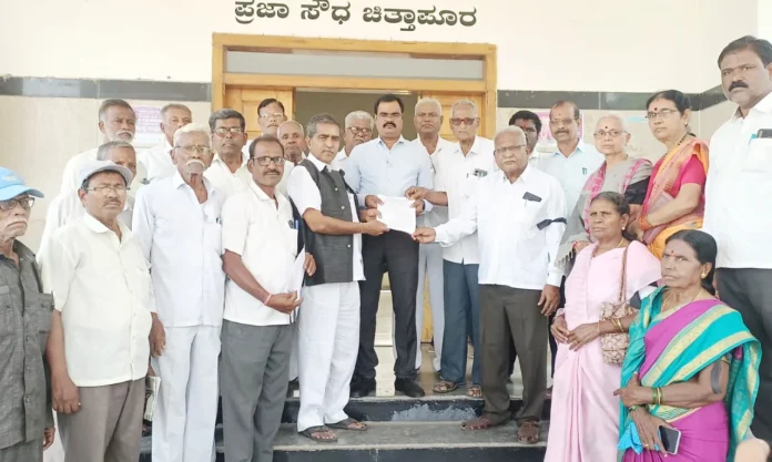 ಚಿತ್ತಾಪುರ:ಮಾ.26:ಕೇಂದ್ರ ಸರ್ಕಾರವು ಪಿಂಚಣಿದಾರರನ್ನು ವರ್ಗೀಕರಿಸುವ ಮತ್ತು ಪಿಂಚಣೆ ವ್ಯತ್ಯಾಸಗಳನ್ನು ಕಾಯ್ದುಕೊಳ್ಳುವ ವಿವಾದಾತ್ಮಕ ಕ್ರಮವನ್ನು ಜಾರಿಗೆ ತಂದಿರುವುದನ್ನು ವಿರೋಧಿಸಿ ಕರ್ನಾಟಕ ರಾಜ್ಯ ಸರ್ಕಾರಿ ನಿವೃತ್ತ ನೌಕರರ ಸಂಘವು ತೀವ್ರ ಆಕ್ರೋಶ ವ್ಯಕ್ತಪಡಿಸಿ ಪ್ರತಿಭಟನೆ ನಡೆಸಿದರು.