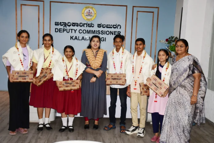 ಕಲಬುರಗಿ,ಏ.25-ಇತ್ತೀಚಿಗೆ ಪ್ರಕಟಗೊಂಡ ಎಸ್.ಎಸ್.ಎಲ್.ಸಿ ಫಲಿತಾಂಶದಲ್ಲಿ ಜಿಲ್ಲೆಗೆ ಹೆಚ್ಚಿನ ಅಂಕ ಪಡೆದ 6 ವಿದ್ಯಾರ್ಥಿಗಳನ್ನು ಜಿಲ್ಲಾಧಿಕಾರಿ ಬಿ.ಫೌಜಿಯಾ ತರನ್ನುಮ್ ಅವರು ಶುಕ್ರವಾರ ತಮ್ಮ ಕಚೇರಿಯಲ್ಲಿ ಸನ್ಮಾನಿಸಿ ಮಕ್ಕಳಿಗೆ ಪೆÇ್ರೀತ್ಸಾಹಿಸಿದರು.