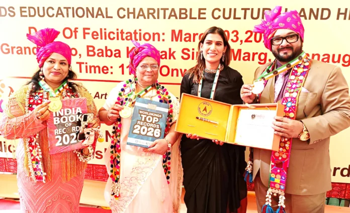ನವದೆಹಲಿ,ಮಾ.6-ಭಾರತದ ಶ್ರೀಮಂತ ಬುಡಕಟ್ಟು ಪರಂಪರೆಯನ್ನು ಆಚರಿಸುವ ಗಮನಾರ್ಹ ಸಾಧನೆಯಲ್ಲಿ ಡಾ.ನರೆಶ್ ರಾಥೋಡ್ ಮತ್ತು ರಾಥೋಡ್ನ ಶೈಕ್ಷಣಿಕ ಚಾರಿಟಬಲ್ ಕಲ್ಚರಲ್ ಮತ್ತು ಹೆರಿಟೇಜ್ ಟ್ರಸ್ಟ್ನ ತಂಡವು ಮಾರ್ಚ್ 3 ರಂದು ಇಂಡಿಯಾ ಬುಕ್ ಆಫ್ ರೆಕಾಡ್ರ್ಸ್ನಿಂದ ಗುರುತಿಸಲ್ಪಟ್ಟ ರಾಷ್ಟ್ರೀಯ ದಾಖಲೆಯನ್ನು ಸಾಧಿಸಿದೆ.