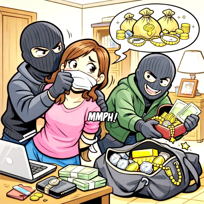 ಮಗಳ ಮದುವೆಗಾಗಿ ಮಹಿಳೆ ಬಂಗಾರ ಸಂಗ್ರಹಿಸಿ ಇಟ್ಟಿದ್ದರು. ಕಳ್ಳರು ರಾತ್ರಿ ವೇಳೆ ಮನೆಯೊಳಗೆ ನುಗ್ಗಿ ಮಹಿಳೆಯ ಬಾಯಿಗೆ ಬಟ್ಟೆ ತುರುಕಿ ಚಿರಾಡದಂತೆ ಮಾಡಿ ಚಿನ್ನಾಭರಣ ದೋಚಿಕೊಂಡು ಹೋಗಿದ್ದಾರೆ ಎಂದು ತಿಳಿದುಬಂದಿದೆ.
